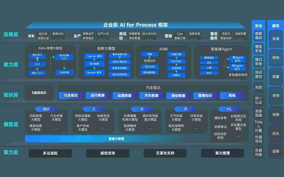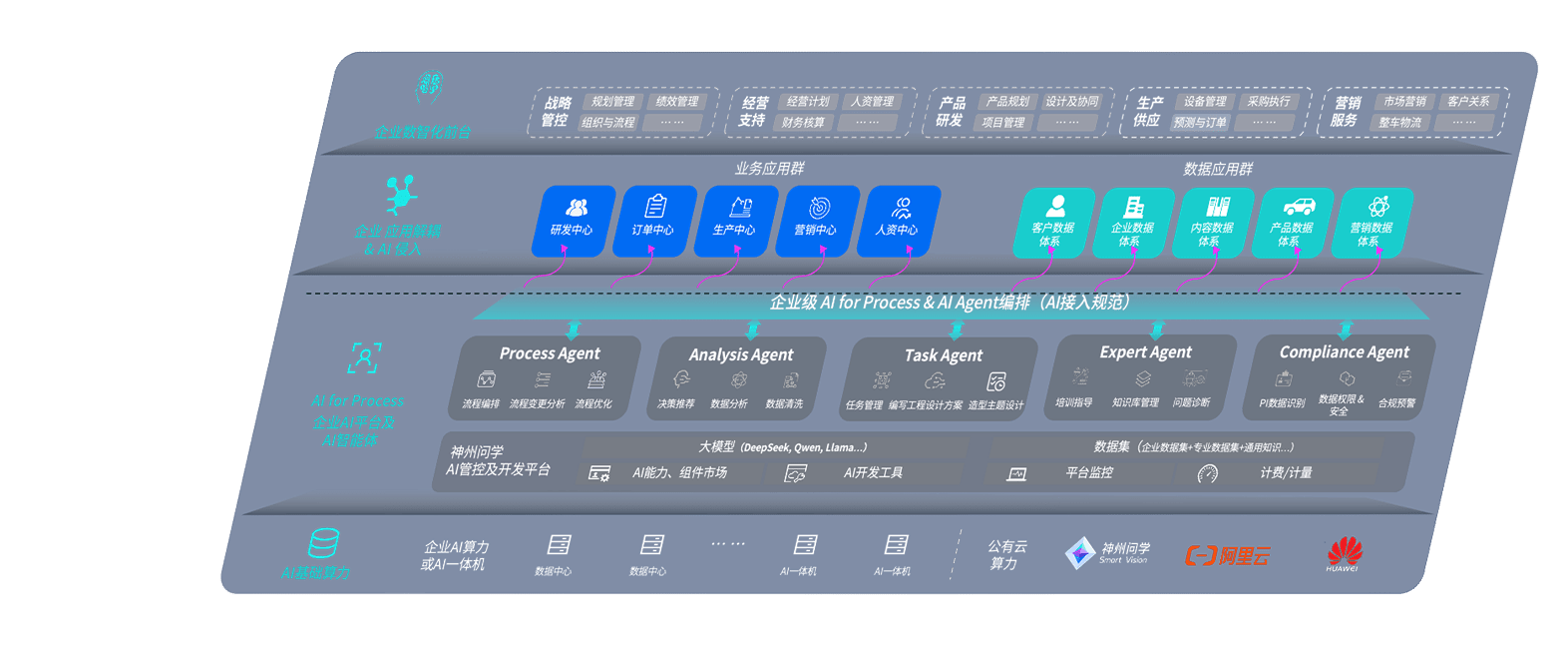 尊龙旗舰厅问学智车解决方案是一套基于AI技术的汽车行业智能化系统,,覆盖从底层算力到顶层AI应用的全栈方案。。。。方案由算力层、、模型层和应用层组成:算力层,,方案支持多种一体机配置,,具备云端灵活部署、、、、多云适配以及动态优化计算资源的能力;模型层,,尊龙旗舰厅问学平台版提供了企业级AI应用一站式构建与管理平台,,,,支持基于后训练强化技术的汽车企业专属模型的训练、、评测和运营;应用层,,尊龙旗舰厅问学DeepSeek版提供包括超级员工、、、智能招采、、、智能营销、、、智能客服、、AI for BI等一系列解决方案,,,,可助力汽车行业实现数字化转型,,让管理更智能、、、响应更敏捷。。